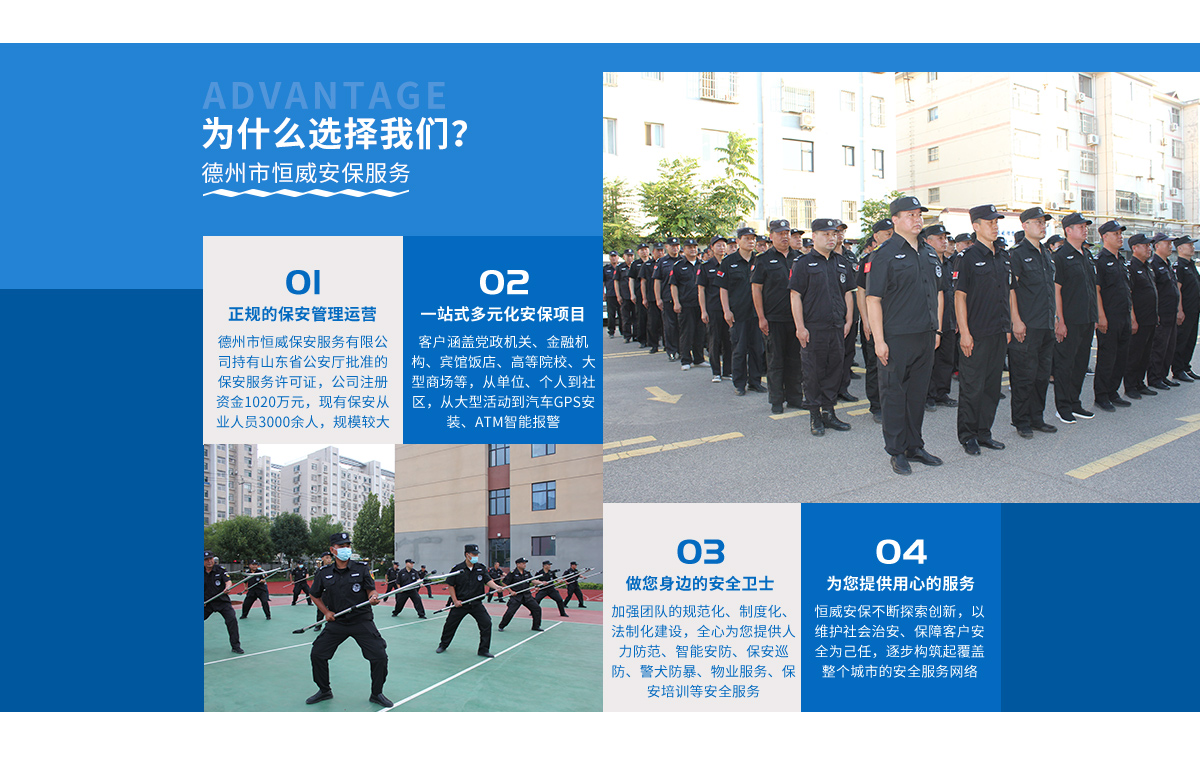 - 德州市恒威安保服務(wù)有限公司,注冊資金1020萬元。是經(jīng)山東省公安廳批準(zhǔn)、德州市工商管理局登記注冊、具有獨立法人資格的專業(yè)保安服務(wù)公司,下設(shè)10個職能科室和業(yè)務(wù)部...